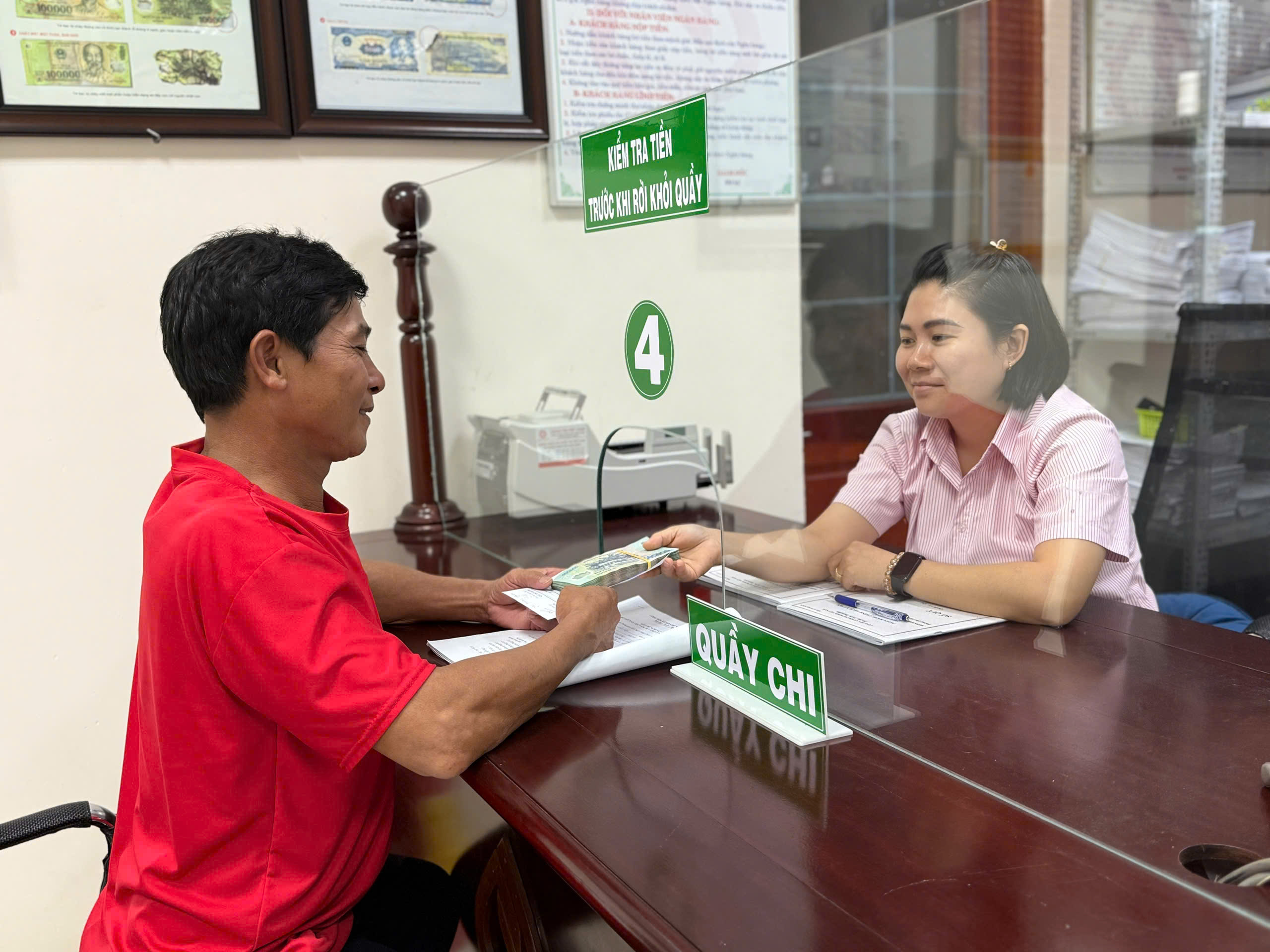 Theo đó, hộ gia đình Nguyễn Thanh Trà có con là sinh viên Nguyễn Thị Cẩm Giang, ở thôn Nam Giang, xã Bình Khê là khách hàng đầu tiên được giải ngân vốn số tiền 50 triệu đồng năm học 2025-2026 để trang trải tiền học phí, tiền sinh hoạt phí và chi phí học tập khác với lãi suất cho vay là 4,8%/năm (0,4%/tháng). Đây là minh chứng cho sự phối hợp kịp thời giữa Phòng Giao dịch NHCSXH Tây Sơn với chính quyền địa phương, các tổ chức Chính trị - xã hội, Ban quản lý tổ Tiết kiệm và vay vốn.