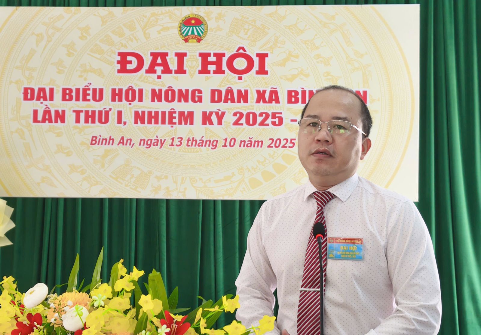 Phát biểu chỉ đạo tại Đại hội, đồng chí Lê Từ Bình – Bí thư Đảng ủy, Chủ tịch HĐND xã ghi nhận và biểu dương những kết quả đạt được của Hội Nông dân xã Bình An trong nhiệm kỳ qua; đồng thời đề nghị Hội tiếp tục đổi mới nội dung, phương thức hoạt động, phát huy vai trò trung tâm, nòng cốt trong phát triển nông nghiệp, xây dựng nông thôn mới nâng cao, nông thôn mới kiểu mẫu; quan tâm bồi dưỡng, nâng cao chất lượng đội ngũ cán bộ Hội, xây dựng tổ chức Hội vững mạnh toàn diện, thực sự là chỗ dựa tin cậy của hội viên nông dân.