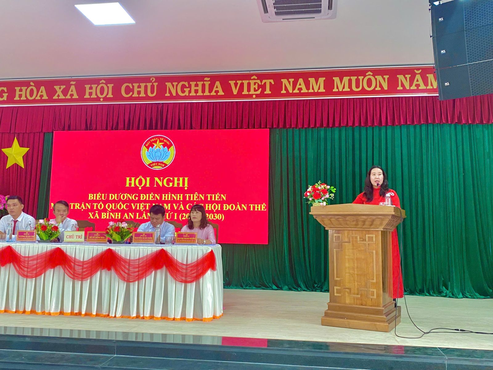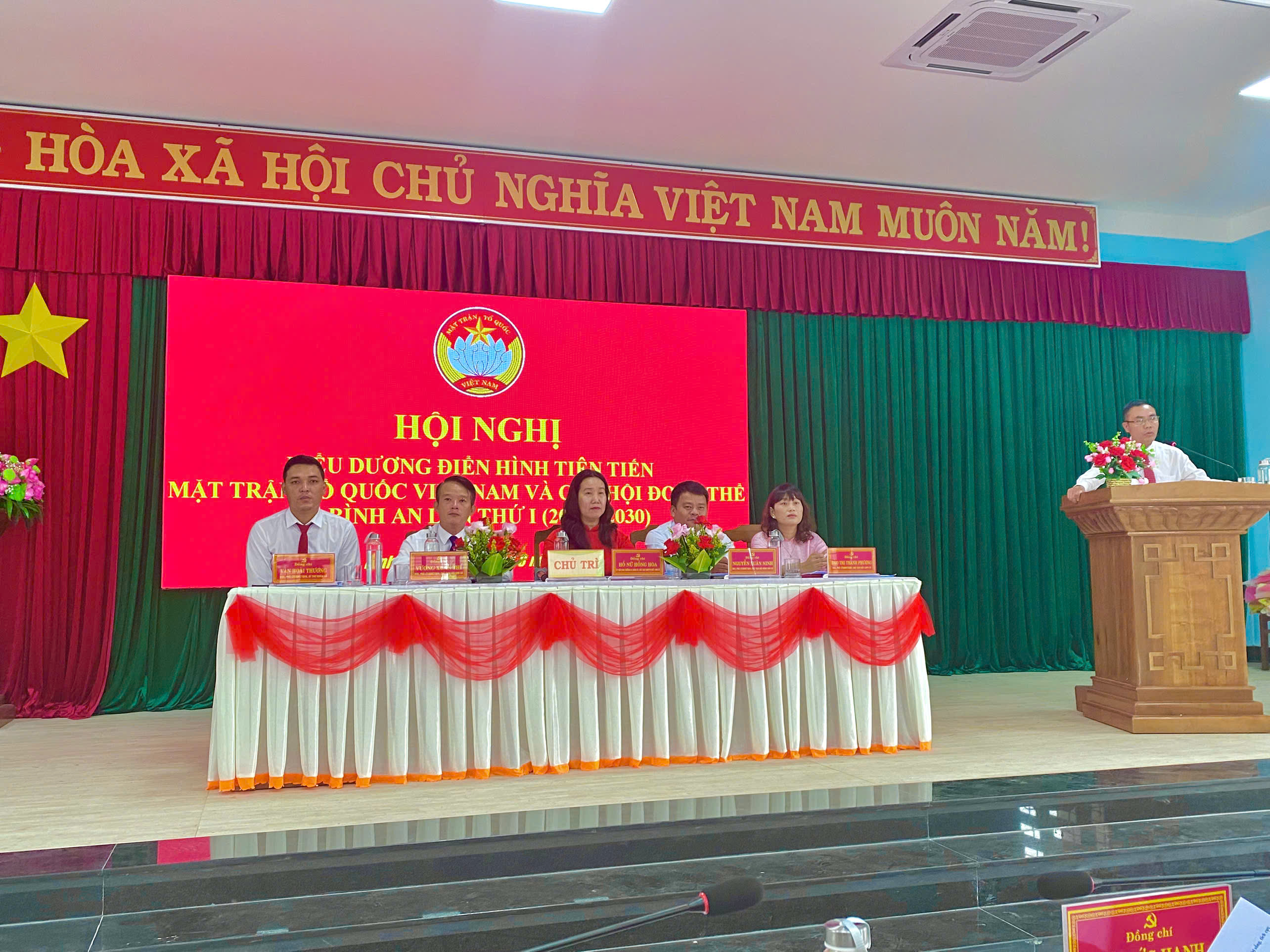Phát biểu khai mạc tại Hội nghị, đồng chí Hồ Nữ Hồng Hoa - Ủy viên Ban Thường vụ Đảng ủy, Chủ tịch Ủy ban Mặt trận Tổ quốc Việt Nam xã phát biểu: Trong không khí thi đua sôi nổi chào mừng Đại hội Đảng các cấp và kỷ niệm 80 năm Quốc khánh 2/9, Mặt trận Tổ quốc và các tổ chức chính trị – xã hội xã Bình An long trọng tổ chức Hội nghị điển hình tiên tiến lần thứ I, giai đoạn 2025 – 2030. Hội nghị là dịp để tổng kết phong trào thi đua yêu nước, công tác khen thưởng giai đoạn 2020 – 2025 và biểu dương những tập thể, cá nhân tiêu biểu. Trong 5 năm qua, các phong trào thi đua trên địa bàn xã đã phát triển mạnh mẽ, gắn với nhiệm vụ phát triển kinh tế - xã hội, quốc phòng – an ninh và xây dựng hệ thống chính trị, nhiều phong trào thiết thực như “Toàn dân đoàn kết xây dựng nông thôn mới”, “Dân vận khéo”, “Thanh niên tình nguyện”, “Nông dân thi đua sản xuất, kinh doanh giỏi”, “Phụ nữ giúp nhau phát triển kinh tế”, “Cựu chiến binh gương mẫu”… đã lan tỏa sâu rộng và mang lại hiệu quả rõ rệt. Thành quả đó là kết tinh từ sự nỗ lực, trách nhiệm và tâm huyết của cả hệ thống chính trị và toàn thể Nhân dân xã nhà. Hội nghị sẽ thảo luận các báo cáo tổng kết, tham luận mô hình hay, biểu dương điển hình tiên tiến và phát động phong trào thi đua giai đoạn 2025–2030. Với tinh thần “Thi đua là yêu nước”, Hội nghị kỳ vọng tạo khí thế mới, góp phần thực hiện thắng lợi Nghị quyết Đại hội Đảng bộ xã Bình An nhiệm kỳ 2025 – 2030.