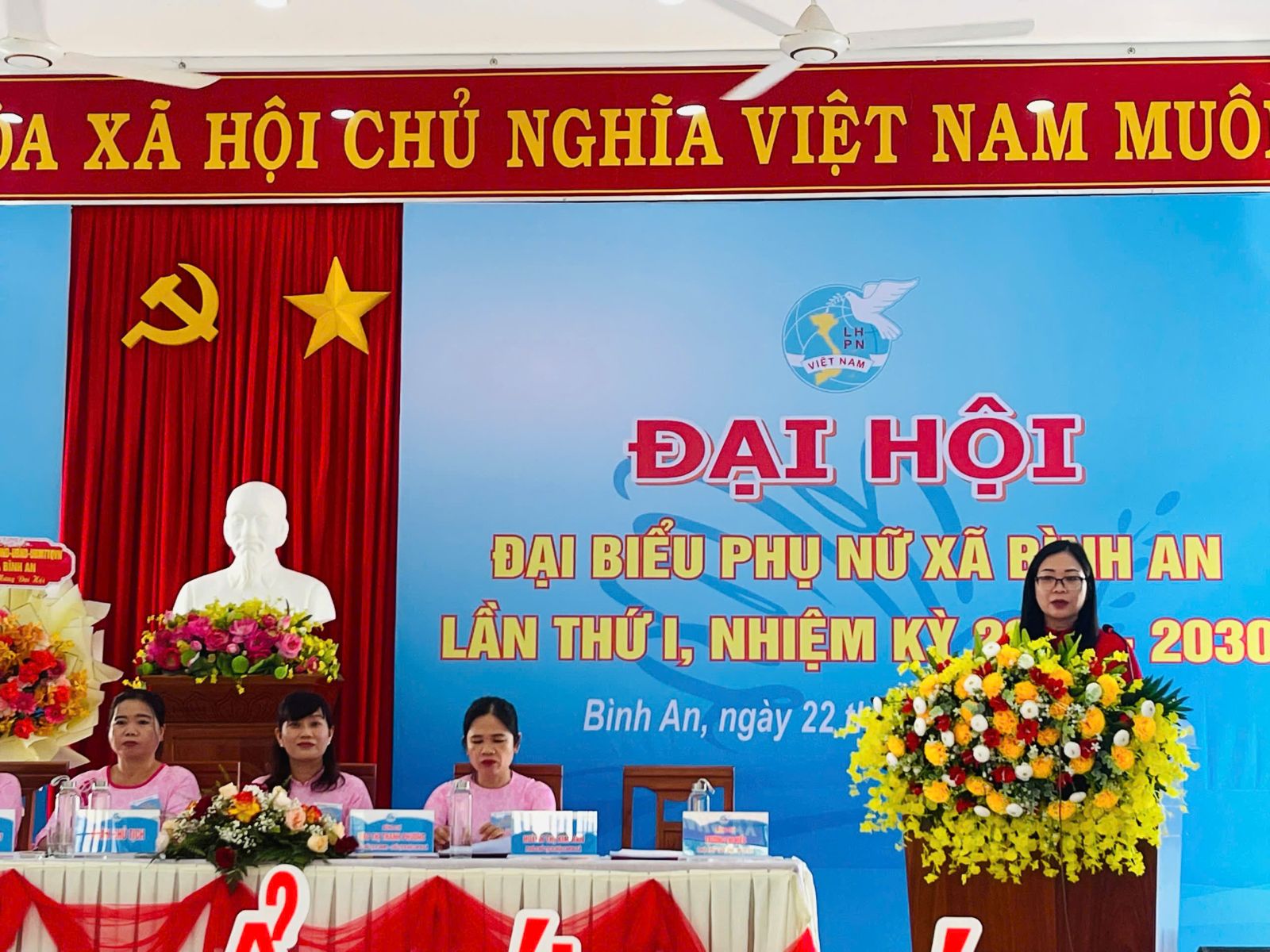 Phát biểu tại Đại hội, đồng chí Vũ Thị Bích Ngọc ghi nhận, biểu dương những kết quả nổi bật mà phong trào phụ nữ xã Bình An đạt được trong nhiệm kỳ qua, đồng thời đề nghị Hội tiếp tục phát huy tinh thần đoàn kết, sáng tạo, bám sát nhiệm vụ chính trị của địa phương, xây dựng người phụ nữ Bình An thời đại mới - năng động, tự tin, có tri thức, có khát vọng vươn lên, đóng góp tích cực vào phát triển kinh tế - xã hội của xã nhà.